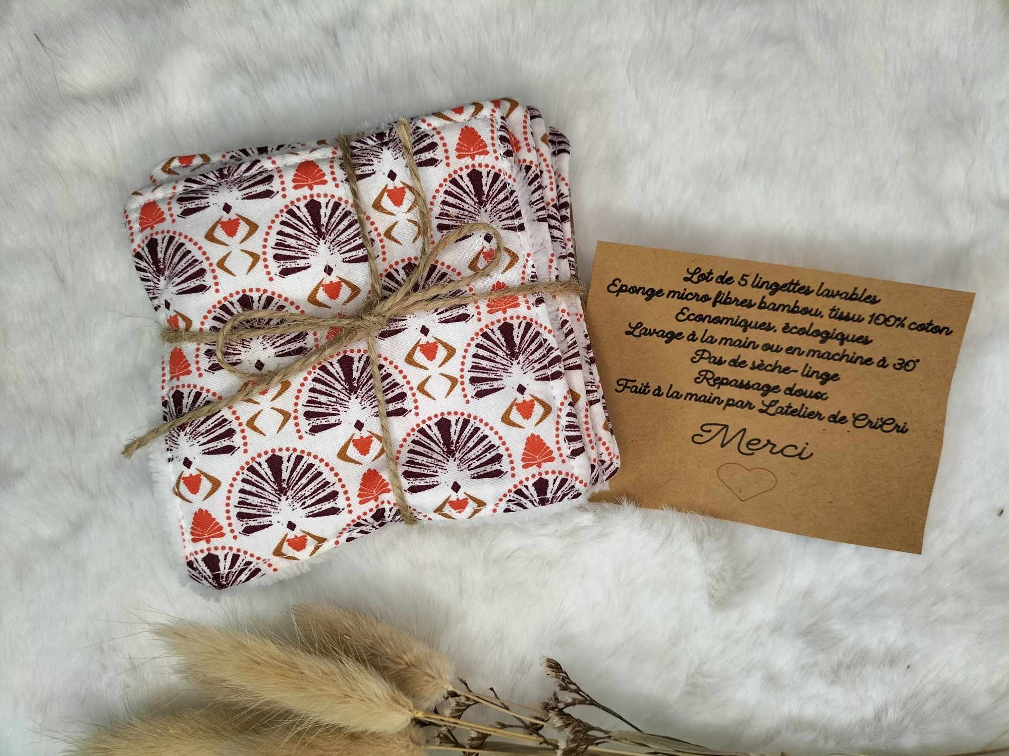 Lot de 5 lingettes lavables.