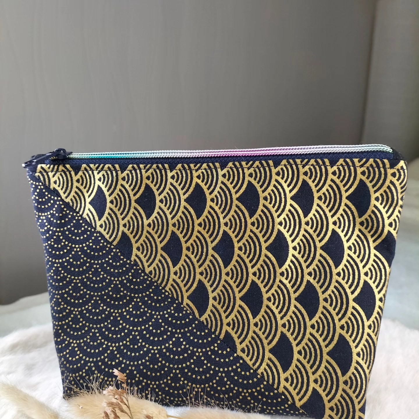 Un joli coton imprimé japonnais, intérieur doublées en coton uni, zip arc en ciel.