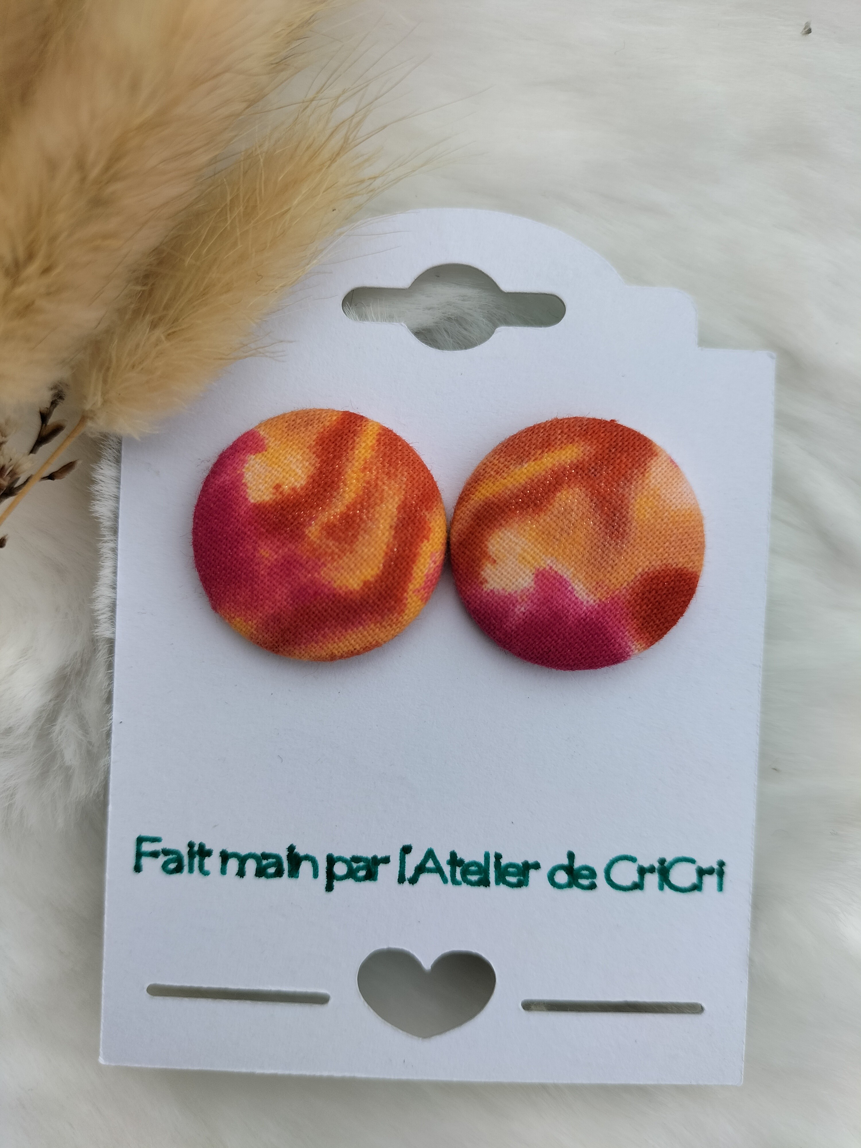 Les boucles d'oreilles puce ou clou rondes en tissu sont des bijoux élégants.