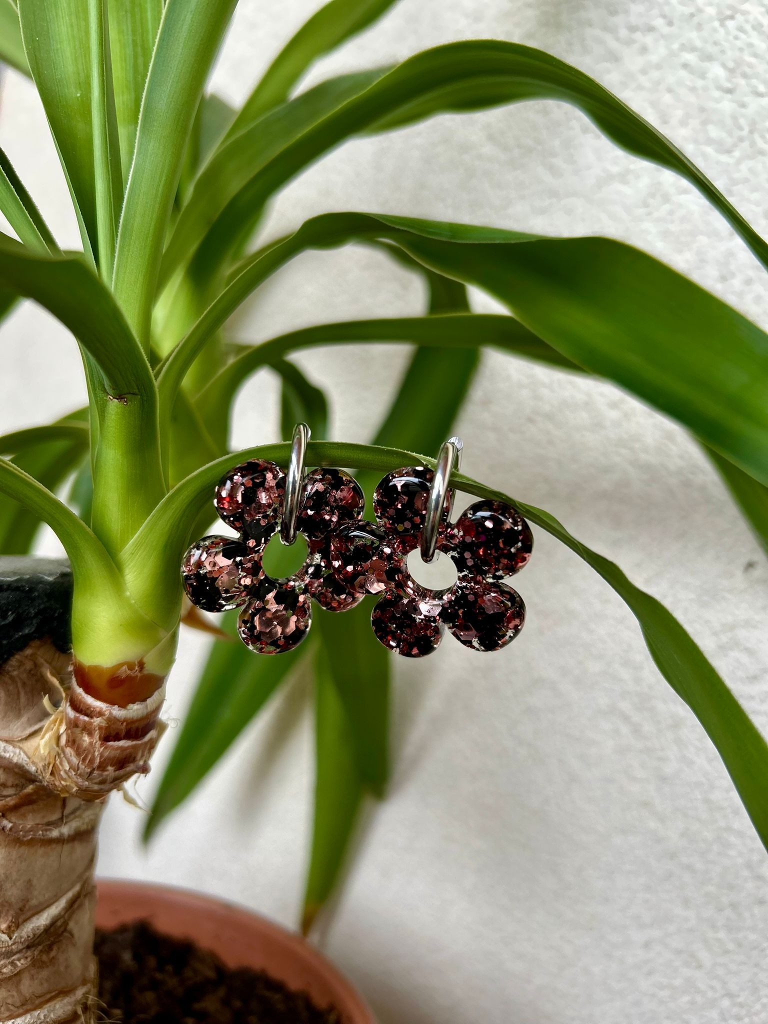 Ces pampilles renferment des paillettes délicatement coulées dans de la résine.